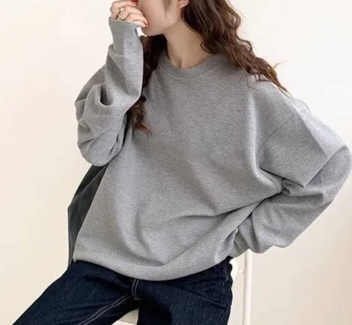 Product name: ラウンドネック グレー 長袖 ロングtシャツ ロンT ゆったり 薄手