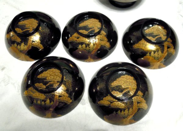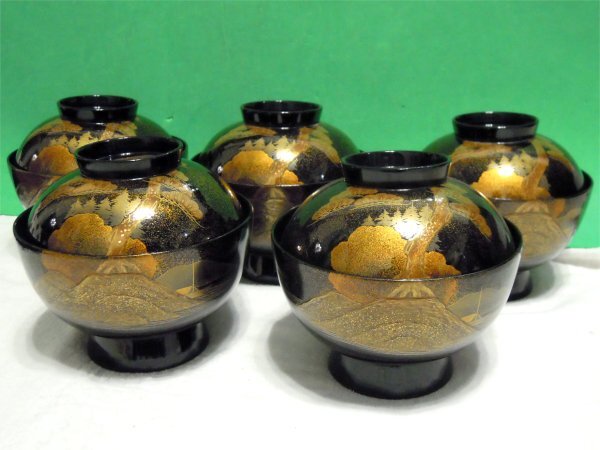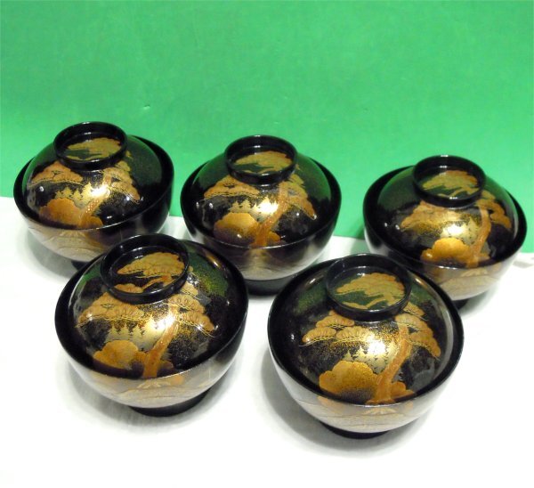 Product name: 輪島塗 蒔絵 雑煮椀 千舟作 五客揃 13x8cm 未使用 ②