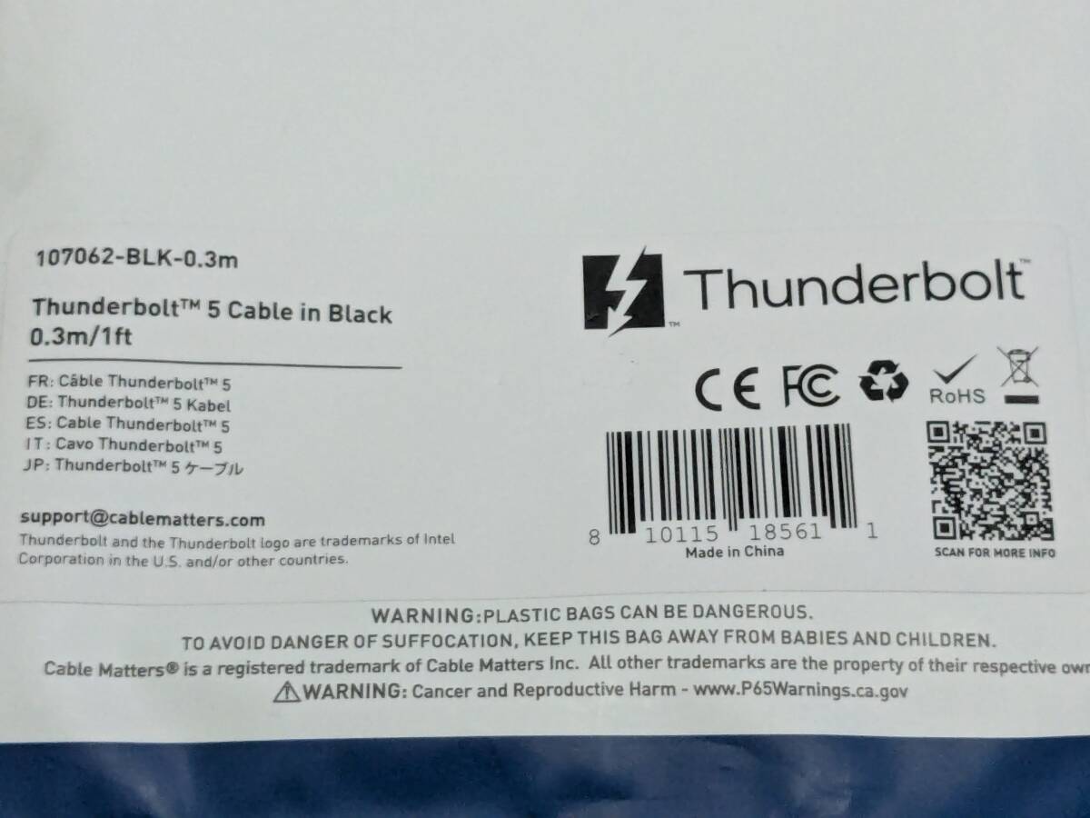 Product name: 0711u0631 Cable Matters 80Gbps Thunderbolt 5 ケーブル 0.3m [最大120Gbps帯域幅ブースト・240W充電・8K / 4K 540Hz] ブラック