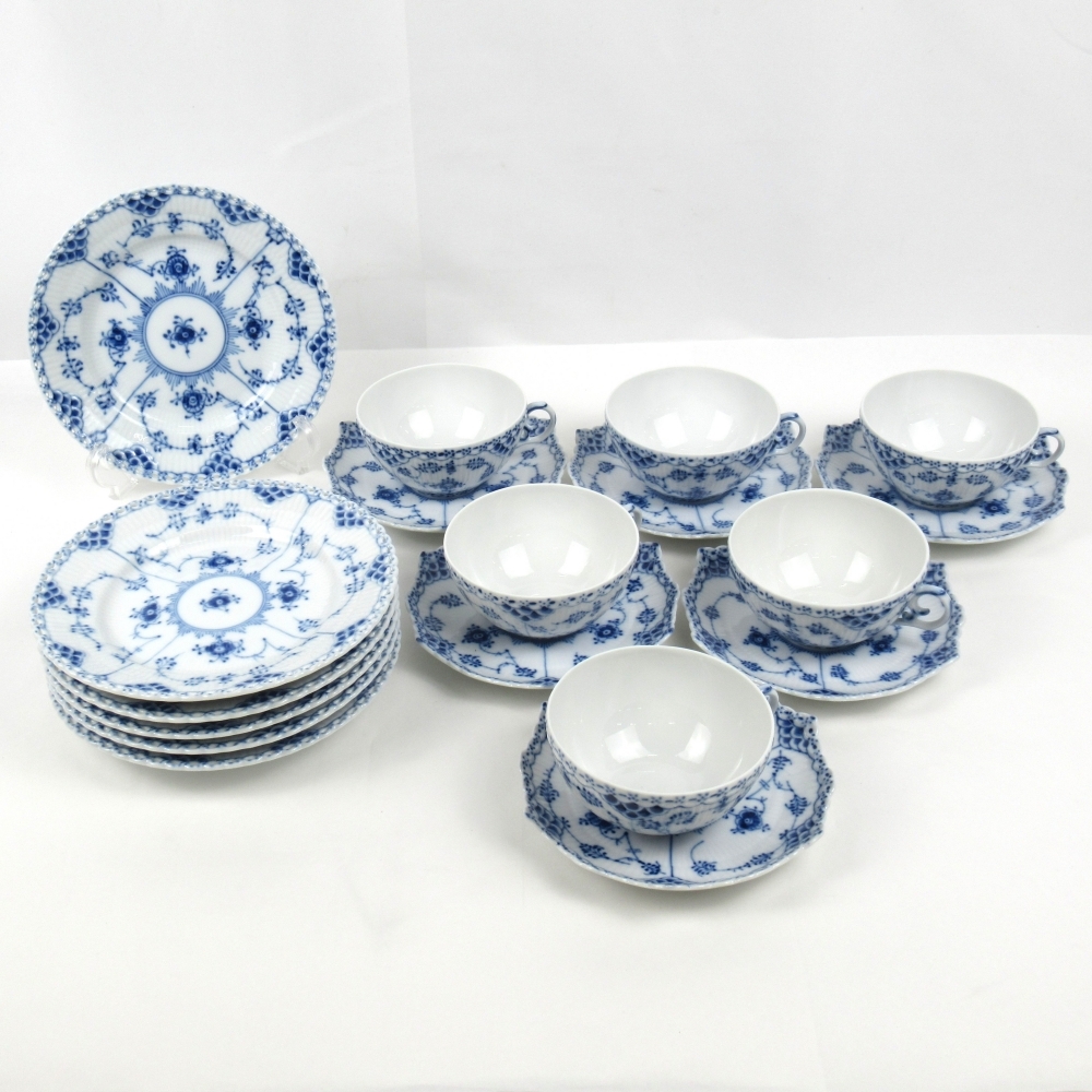 1円〜 Royal Copenhagen ロイヤルコペンハーゲン ブルーフルーテッド フルレース カップ&ソーサー/プレート 計18点 ※同梱不可 4244092