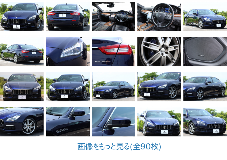 車両状態コメントマセラティらしい明るめのネイビー系のボディカラー、ブルーパッシオーネをまとったクアトロポルテ グランルッソ。目立つ大きな傷はなく、こまかな小傷程度。内装も距離を感じさせないグッドコンディションです。ヘッドライトが変わったMC後モデルですが、やはり印象がまるで違いますね!一気に洗練された印象です。