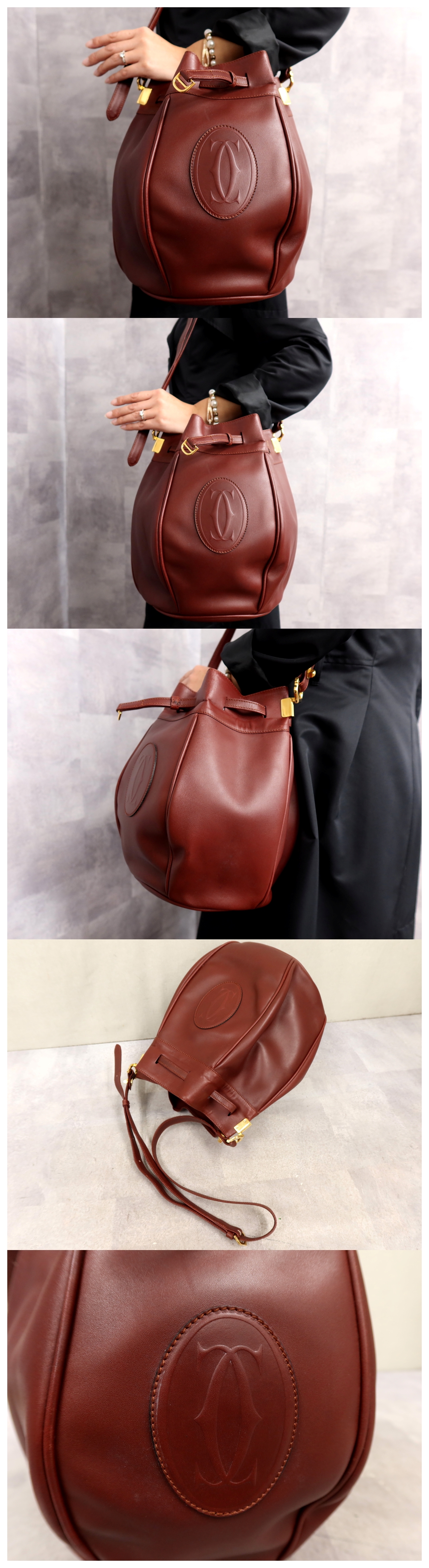 Product name: ●超美品●Cartier カルティエ●マスト●ロゴ型押し●カーフ レザー 本革●巾着 ショルダー バッグ●ボルドー●ゴールド金具●Js64623