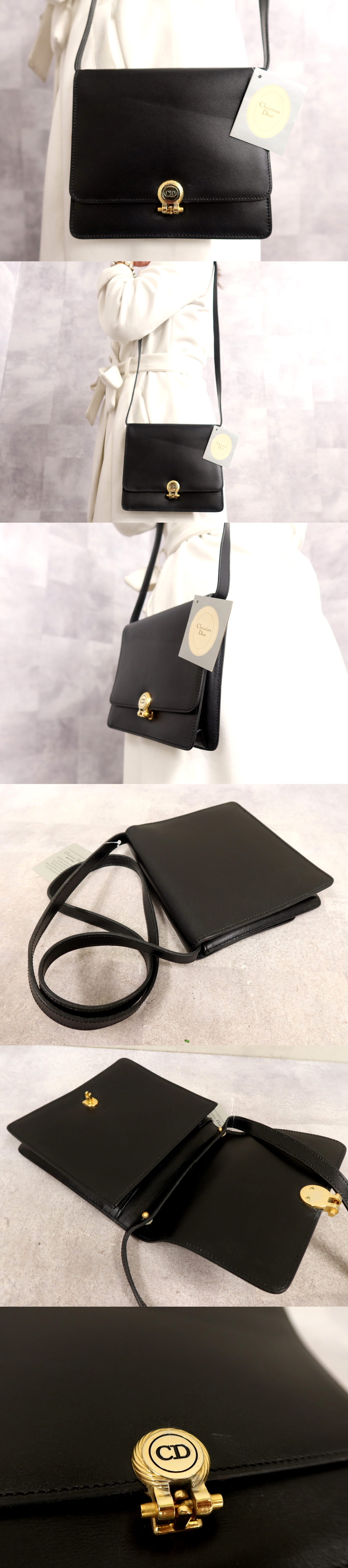 Store ●超美品●Christian Dior クリスチャン・ディオール●カーフ レザー 本革●ショルダー バッグ●黒●ゴールド金具●収納 かばん●Js65400