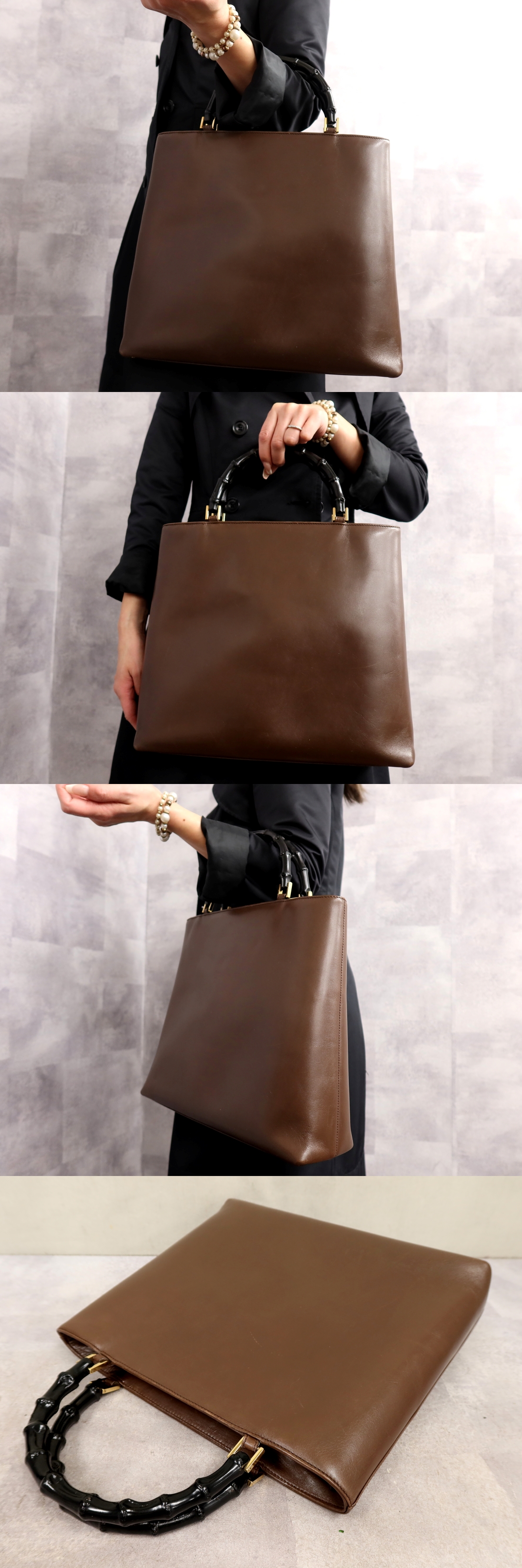Product name: ●超美品●GUCCI グッチ●バンブー●カーフ レザー 本革●ハンド バッグ●黒 ブラウン●G金具●イタリア製●ヴィンテージ●B5●Js65459
