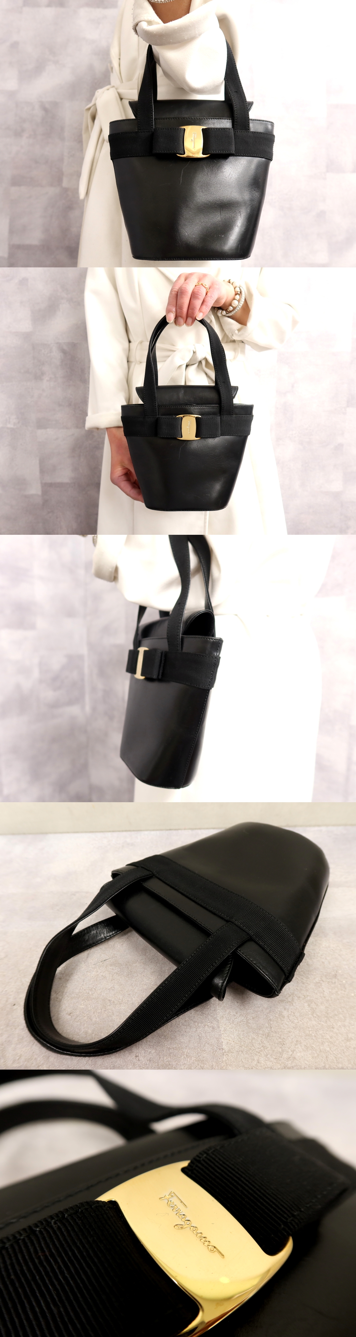 Product name: ●超美品●Salvatore Ferragamo フェラガモ●ヴァラリボン●カーフ レザー 本革●ハンド バッグ●黒●ゴールド金具●腕掛け●Js65546
