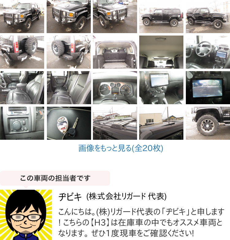 Product name: 【諸費用コミ】:札幌市発/厳選中古車★ 2005年 H3 タイプG 4WD 社外アルミ・マッドタイヤ