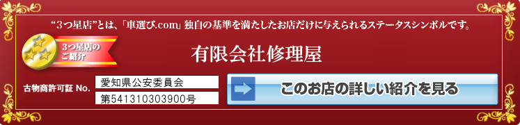 “3つ星店”とは「車選びドットコム」独自の基準を満たした販売店だけに与えられるステータスシンボルです。