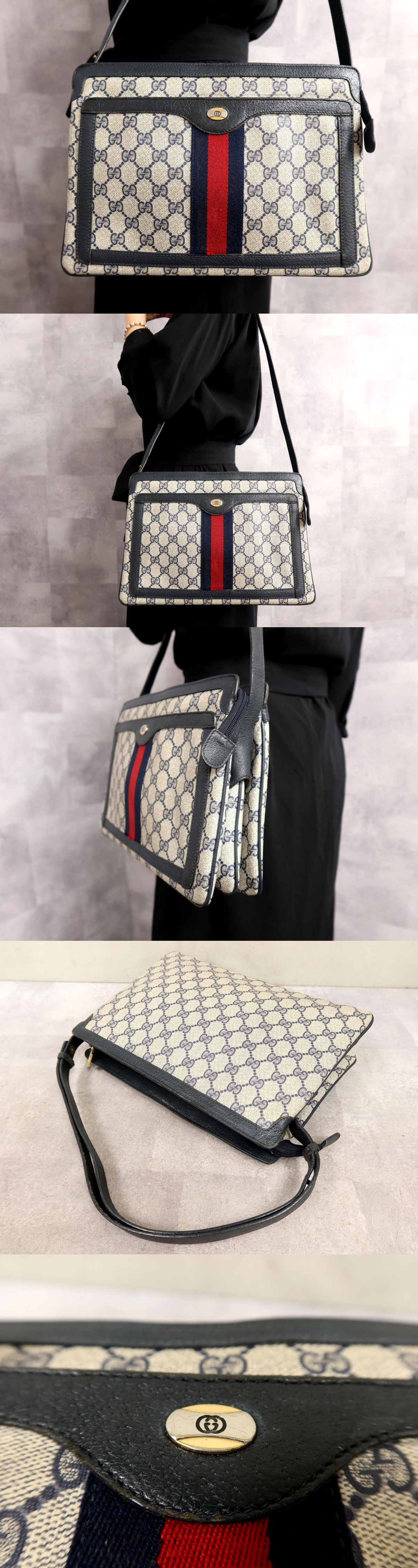 Product name: ●超美品●オールド グッチ●シェリー●GGスプリーム●PVC カーフ レザー 本革●ショルダー バッグ●ネイビー 白●ヴィンテージ●Js66491