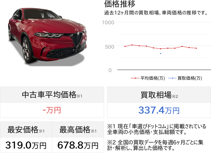 アルファロメオ トナーレの車両平均価格