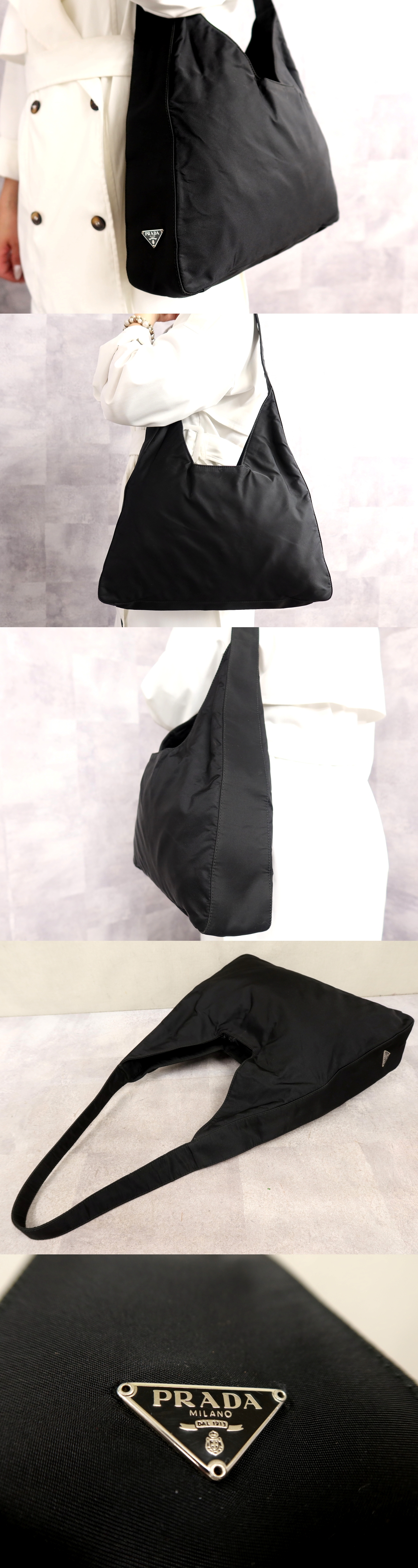 Store ●超美品●PRADA プラダ●三角ロゴプレート●ポコノ ナイロン●ショルダー バッグ●黒●シルバー金具●肩掛け●ヴィンテージ●B5●Js66905