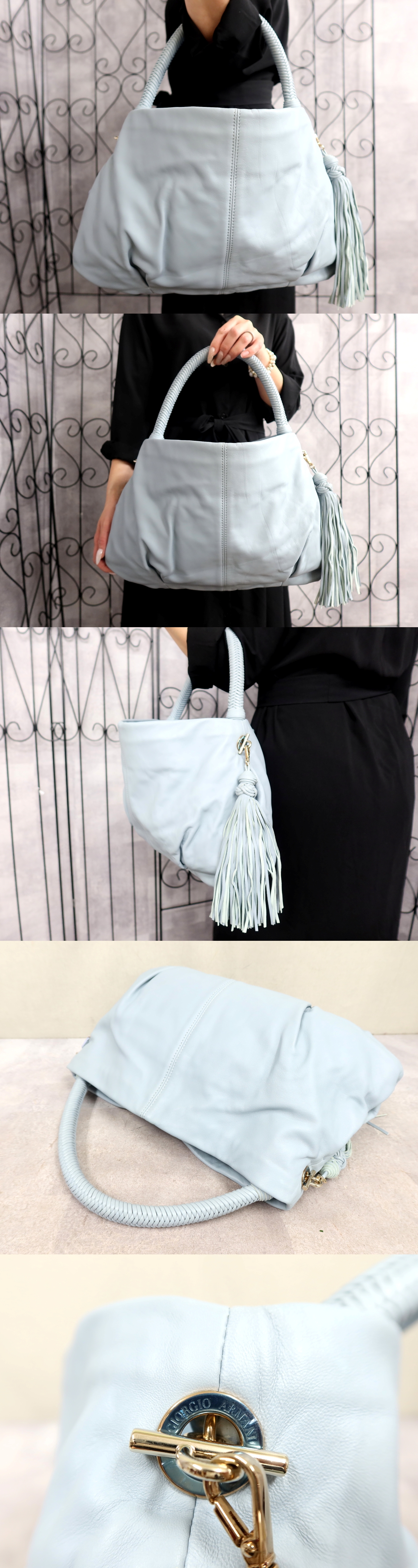 Product name: ●超美品●新品同様●GIORGIO ARMANI ジョルジオ アルマーニ●タッセル●カーフ レザー 本革●ハンド バッグ●ライトブルー●A4●Js66879