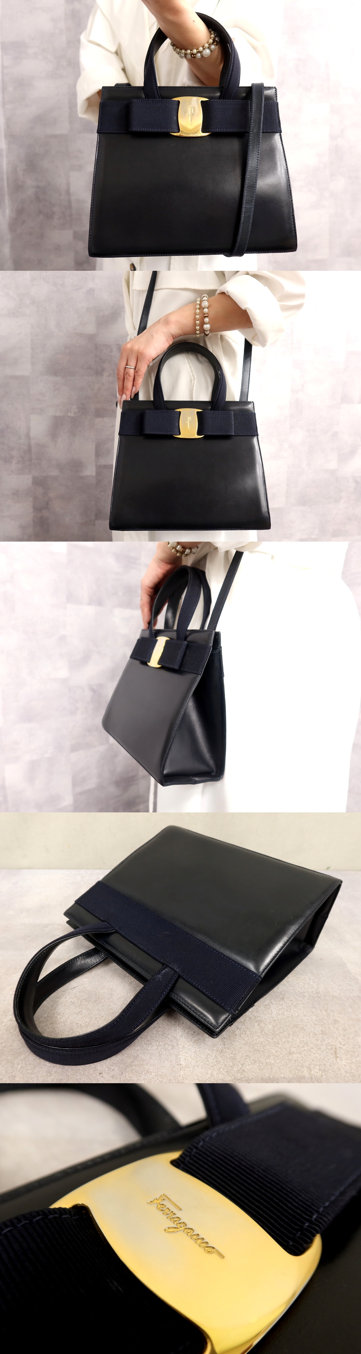 Product name: ●超美品●Salvatore Ferragamo フェラガモ●ヴァラリボン●カーフ レザー 本革●2way ハンド バッグ●ダークネイビー●G金具●Js67253