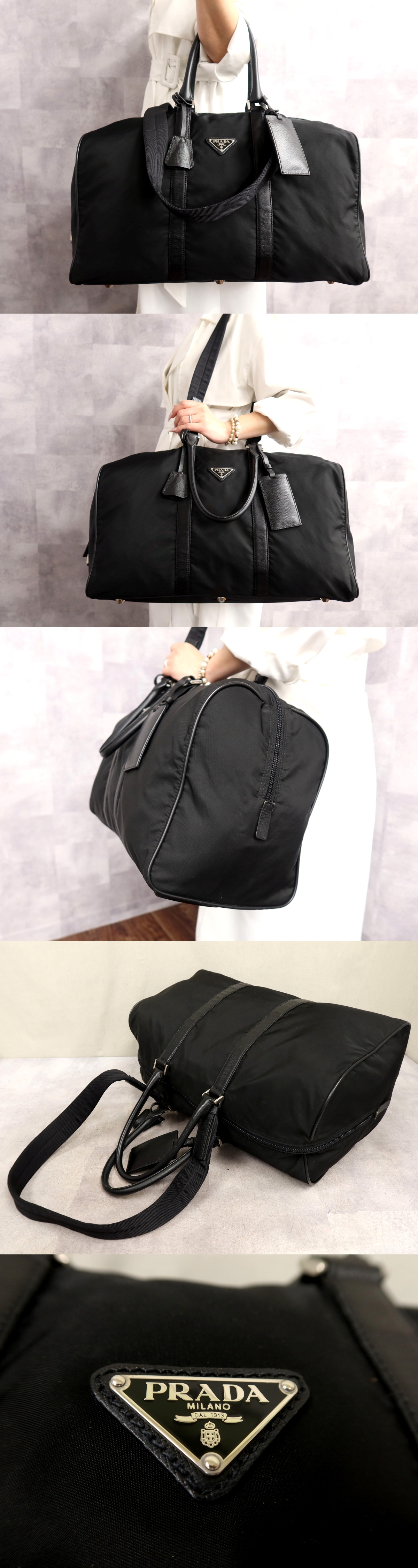 Product name: 超美品●PRADA プラダ●三角ロゴプレート●ポコノ ナイロン サフィアーノ レザー●2way ボストン バッグ●黒●SV金具●イタリア製●Js67235
