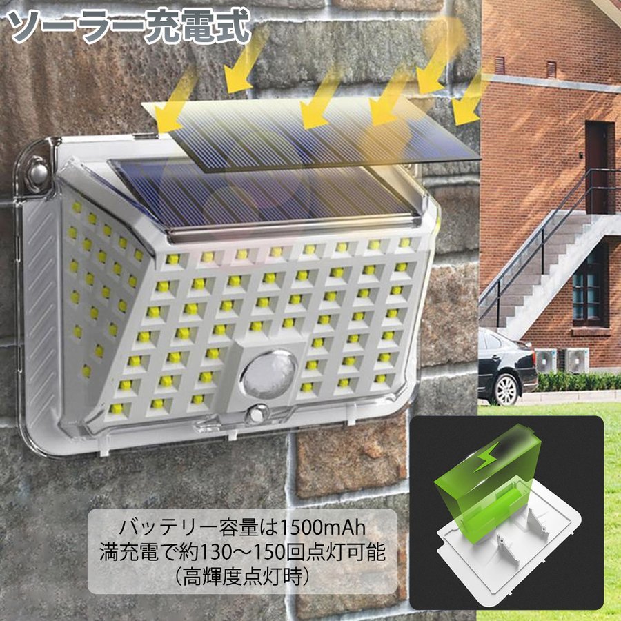Product name: LEDセンサーライト ソーラーライト 90LED 3点灯モード 人感センサー ホワイト 1500mAh 高輝度 IP65 屋外 人感 ソーラー 防水 防犯 2個