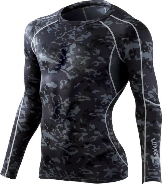 Product name: 新品 ブラックカモフラ size Lロングスリーブシャツ 秋冬 自重堂 ストレッチ 吸湿発熱 防寒 インナーシャツ 58214 ジャウィン Jawin