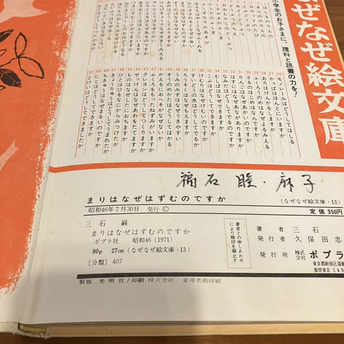 Product name: 240823 なぜなぜ絵文庫13「まりはなぜはずむのですか」三石厳 新井五郎 昭和46年初版 ポプラ社★昭和レトロ当時物希少古書絵本