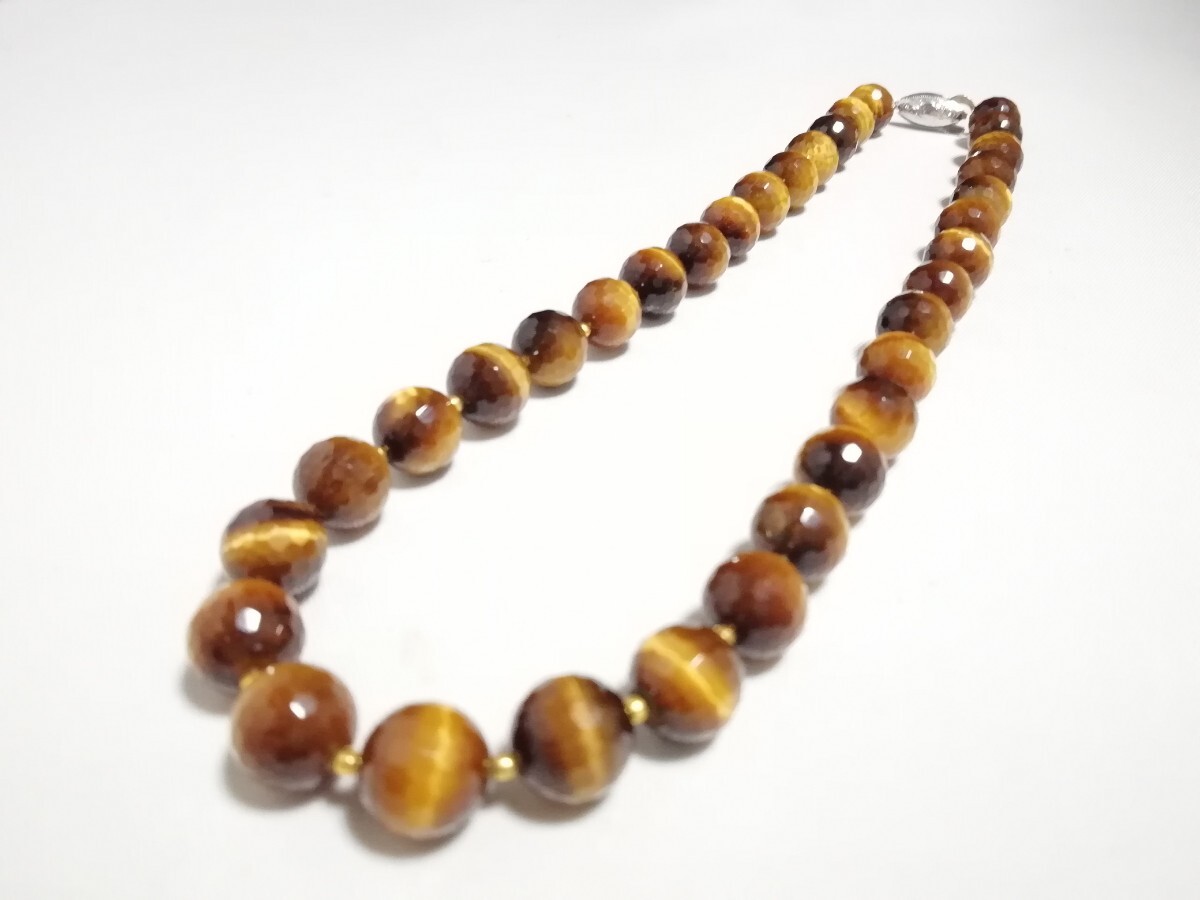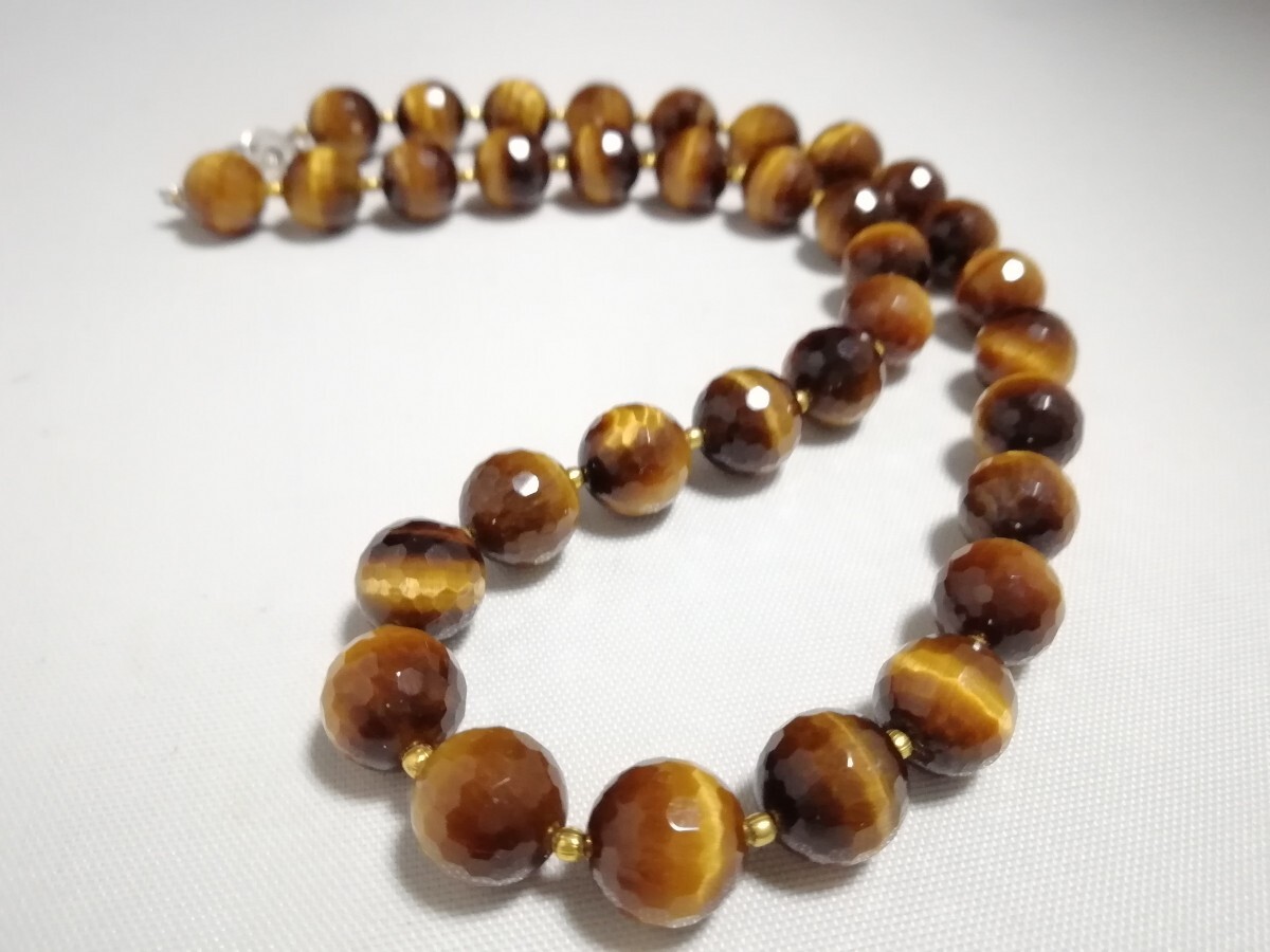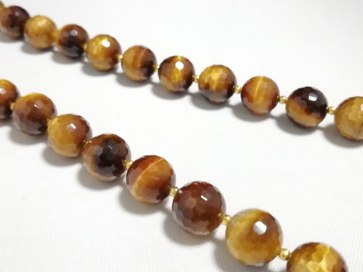 天然タイガーアイ128面カットファンシーネックレス 11402