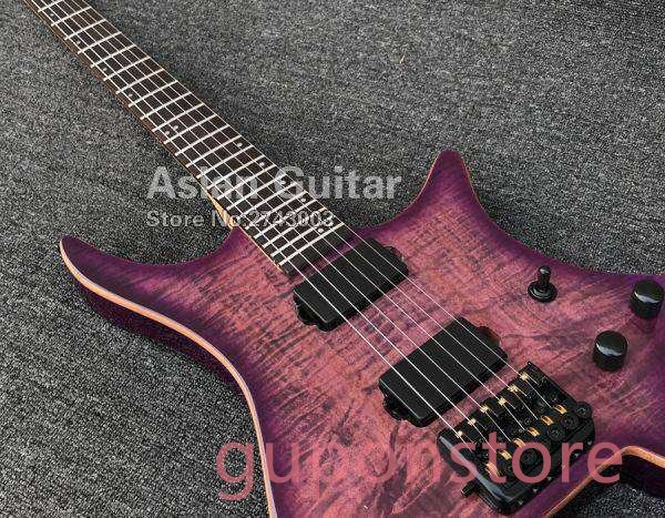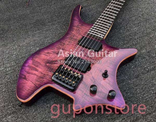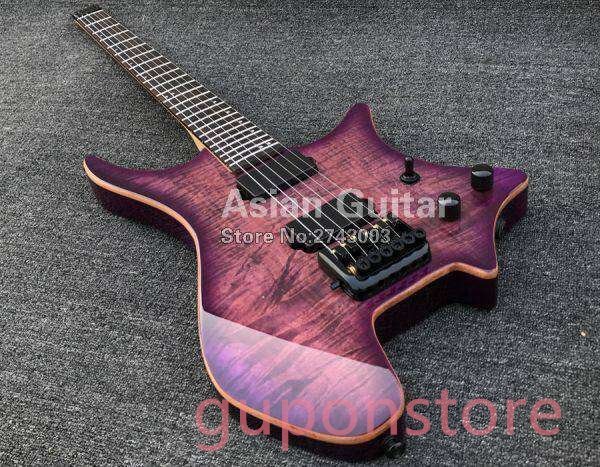 Product name: エレキギター 本体 ハードケース付き 紫 光沢仕上げ マホガニー合板 34インチ ヘッドレス ハード ロック バンド