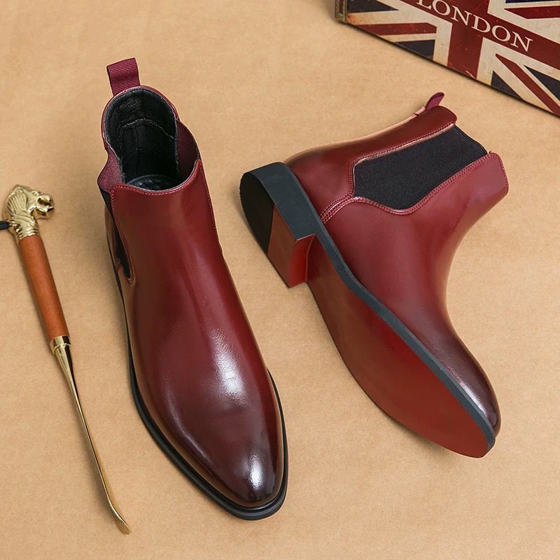 ★新品★メンズ GZ41004-27.0cm/44 ショートブーツ ワインレッド(2色) ビジネスシューズ ワークブーツ サイドゴア