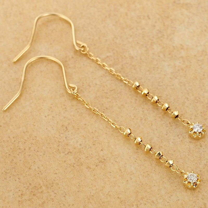 備考:グラスに注がれたシャンパンの泡をイメージしたすっきりとした縦長のフォルムに、煌めくダイヤモンドをあしらった、18金イエローゴールド製のピアスです。仕上済。