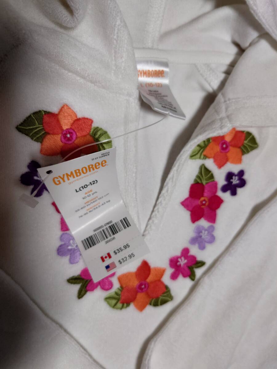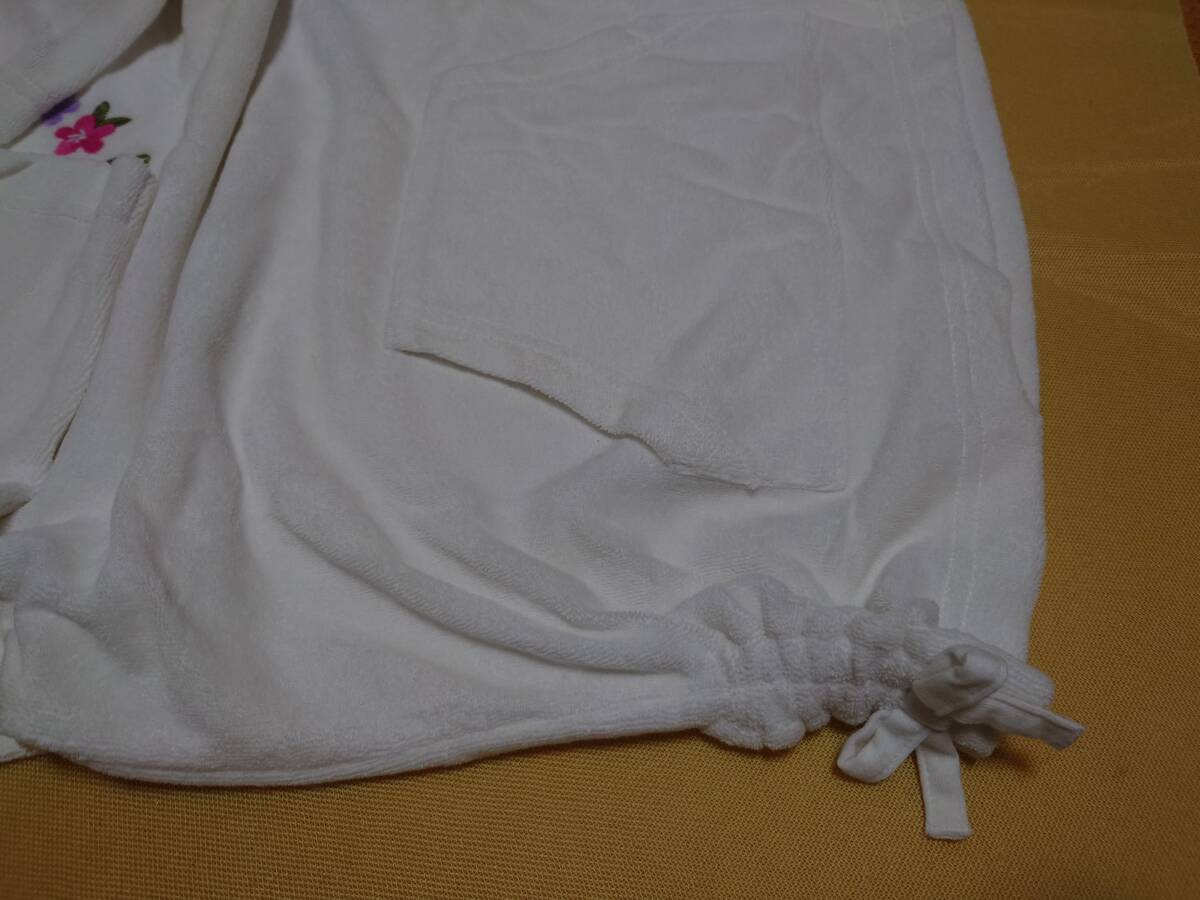 白地に花の刺繍が付いております、タオル地のウエアーです。