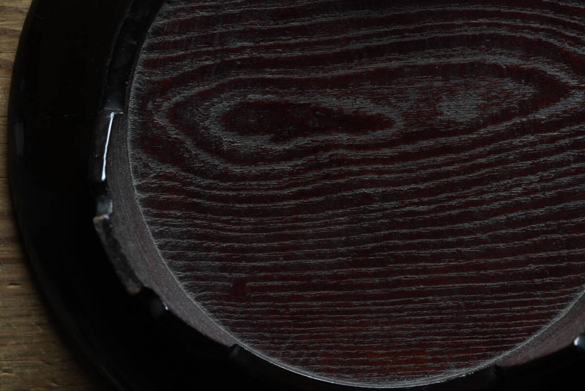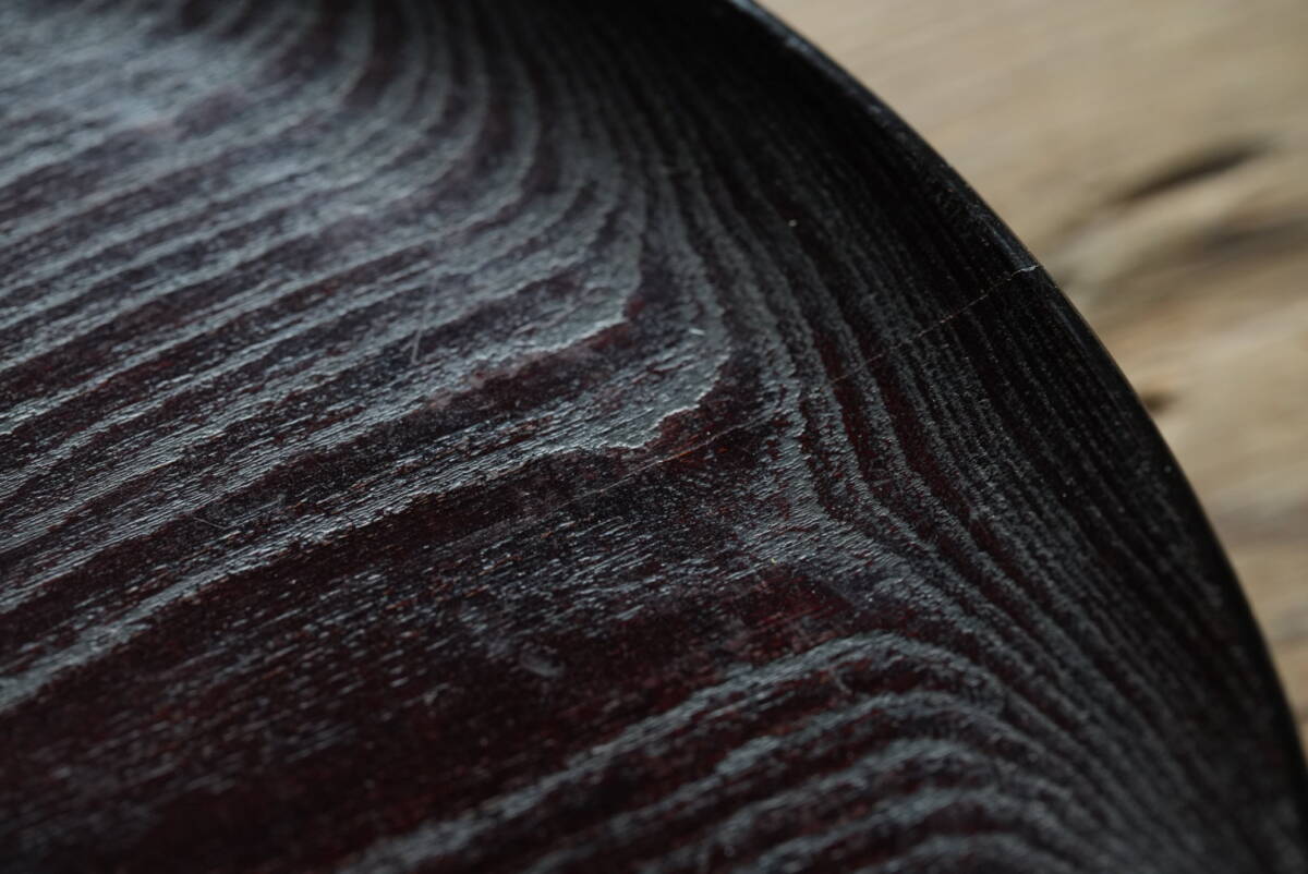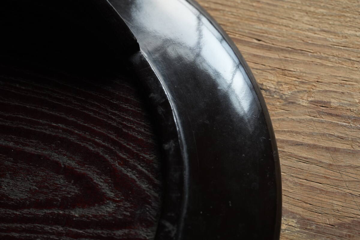 Product name: 古い木目の美しい欅の三つ足膳 漆塗 漆器 / 江戸~明治期 / 骨董 和 民藝 アンティーク 木工 漆芸 漆器 花台 盆 酒器