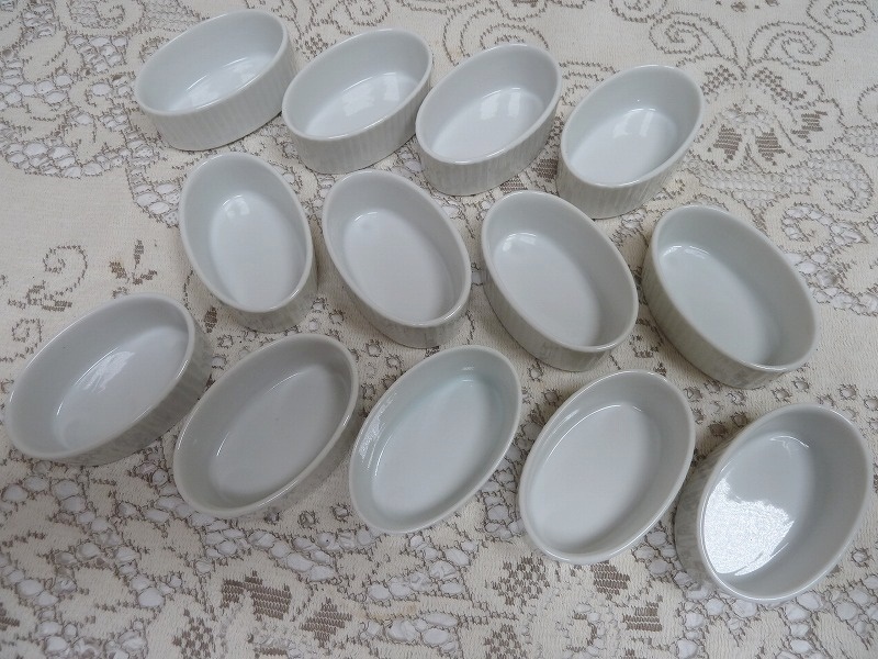 (☆BM)陶器製 ホワイト ミニ コキール グラタン 13客 スフレ プチサイズ 豆皿 オーバル 楕円 菓子器 ココット タルト 業務用 器 大量 食器