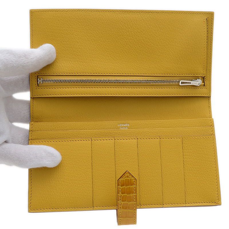 エルメス ベアンスフレ アリゲーター ジョーヌアンブル シルバー金具 B刻印