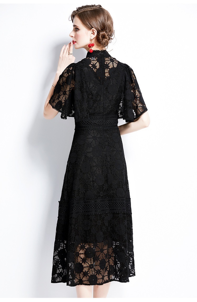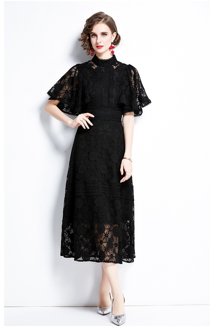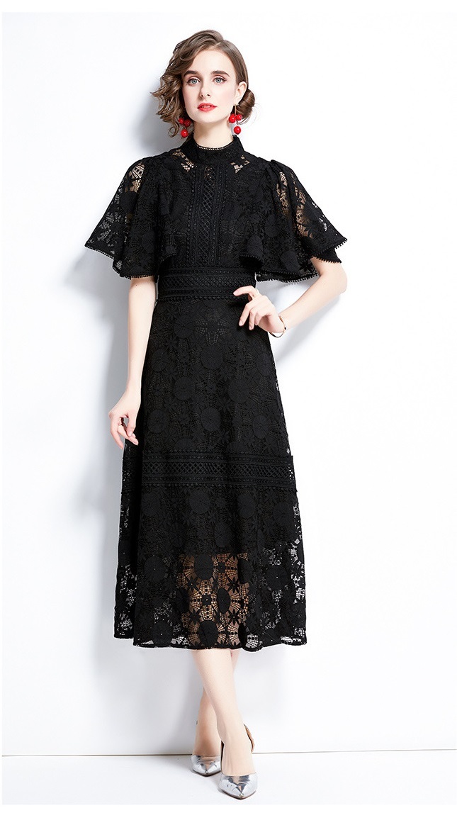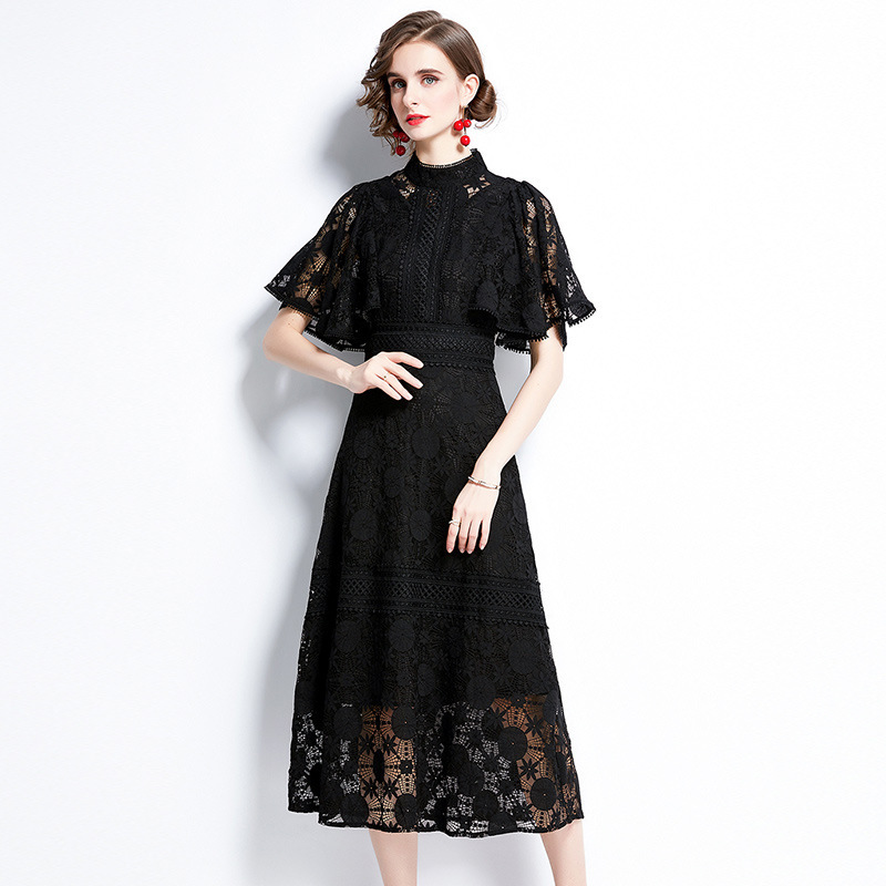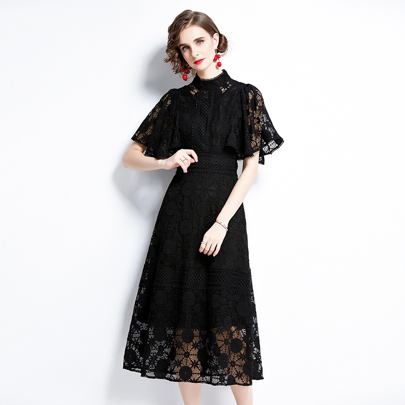 Product name: 在庫一掃セール!激安!ブラック M 通勤 出かけ パーティー 上品感 ケープ風 総レースドレスワンピース
