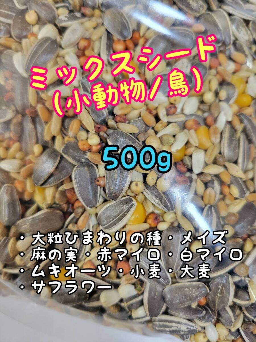 Product name: ミックスシード 500g ペット用 インコ 文鳥 小鳥 鳥類 ハムスター リス 小動物 ひまわりの種 麻の実 赤マイロ 白マイロ ムキオーツ