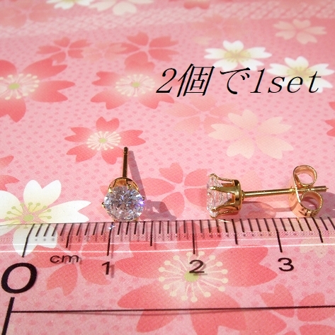 Product name: H&C 輝き抜群 ゴールドカラー サージカルステンレスCZピアス(5mm