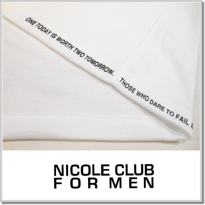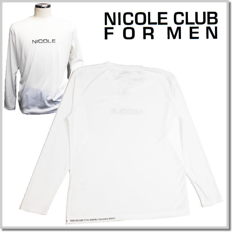 新品未使用! ニコルクラブフォーメン NICOLE CLUB FOR MEN ロゴ刺繍長袖Tシャツ 5164-9100-09(WHITE)-50(XL) ロンT カットソー