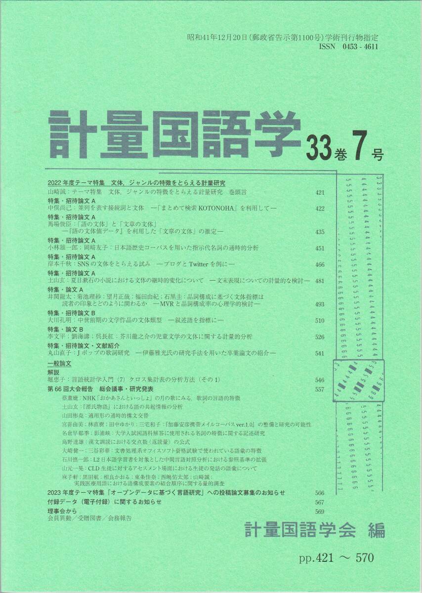 『計量国語学』 33巻7号 2022 pp.421~570 Mathematical Linguistics Vol.33 No.7
