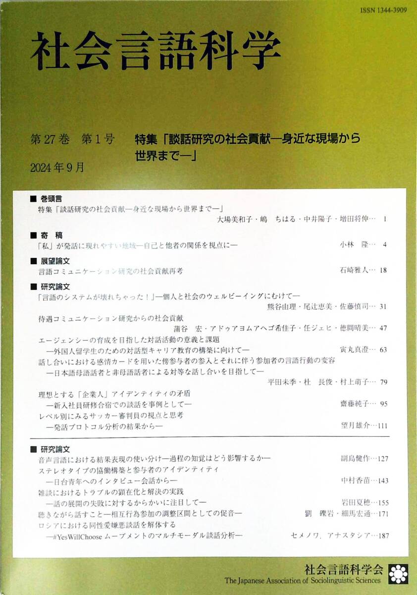 『社会言語科学』 27巻1号 2024年9月 The Japanese Journal of Language in Society Vol.27(1)