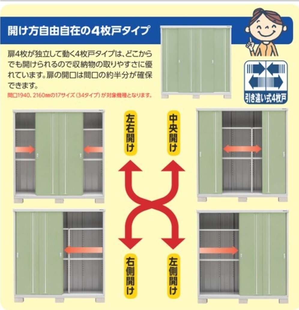 Product name: 【引取り限定】イナバ物置シンプリー鍵付き扉のみ4枚(ジェードグリーン)