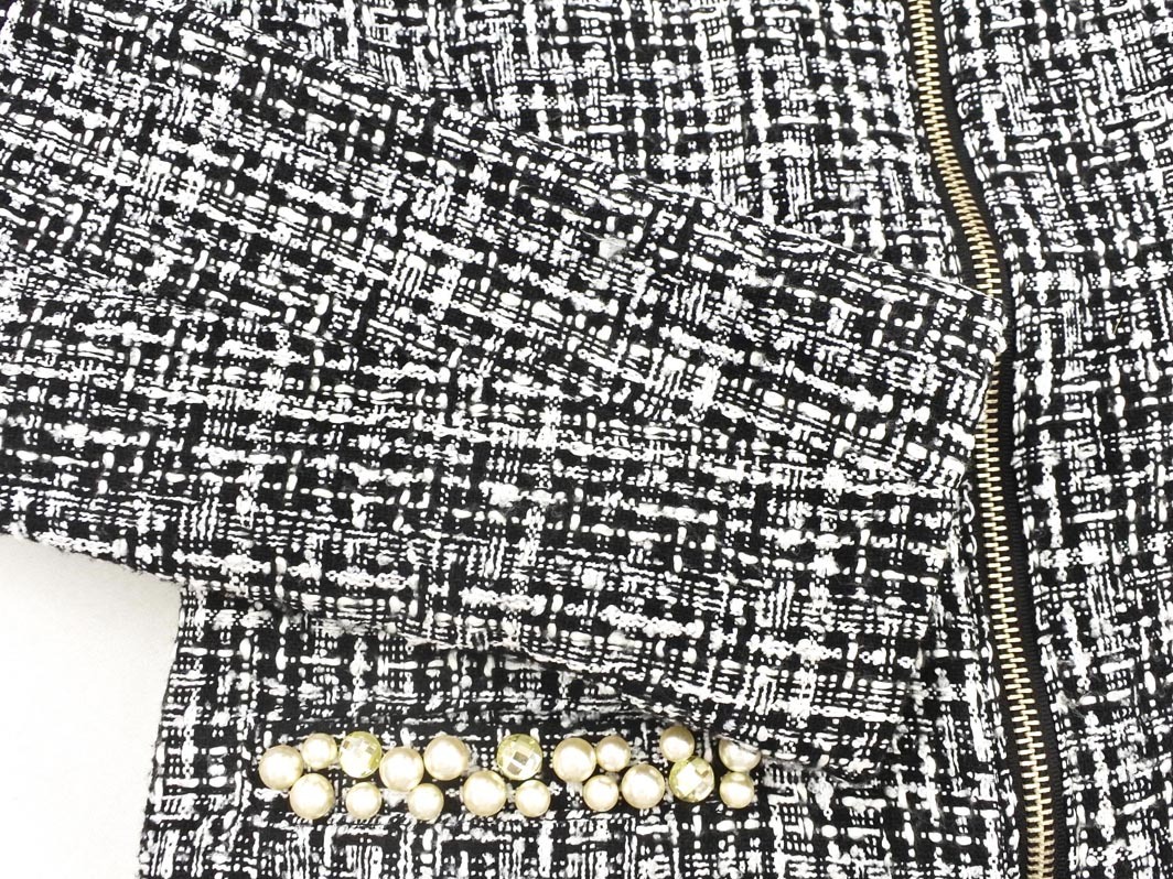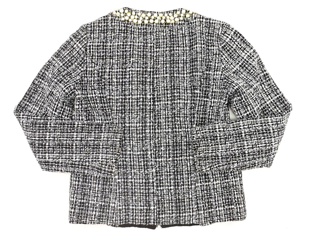 Product name: one way ワンウェイ ツイード パールビーズ ノーカラー ジャケット sizeF/白x黒 ◇■ ☆ fcb4 レディース
