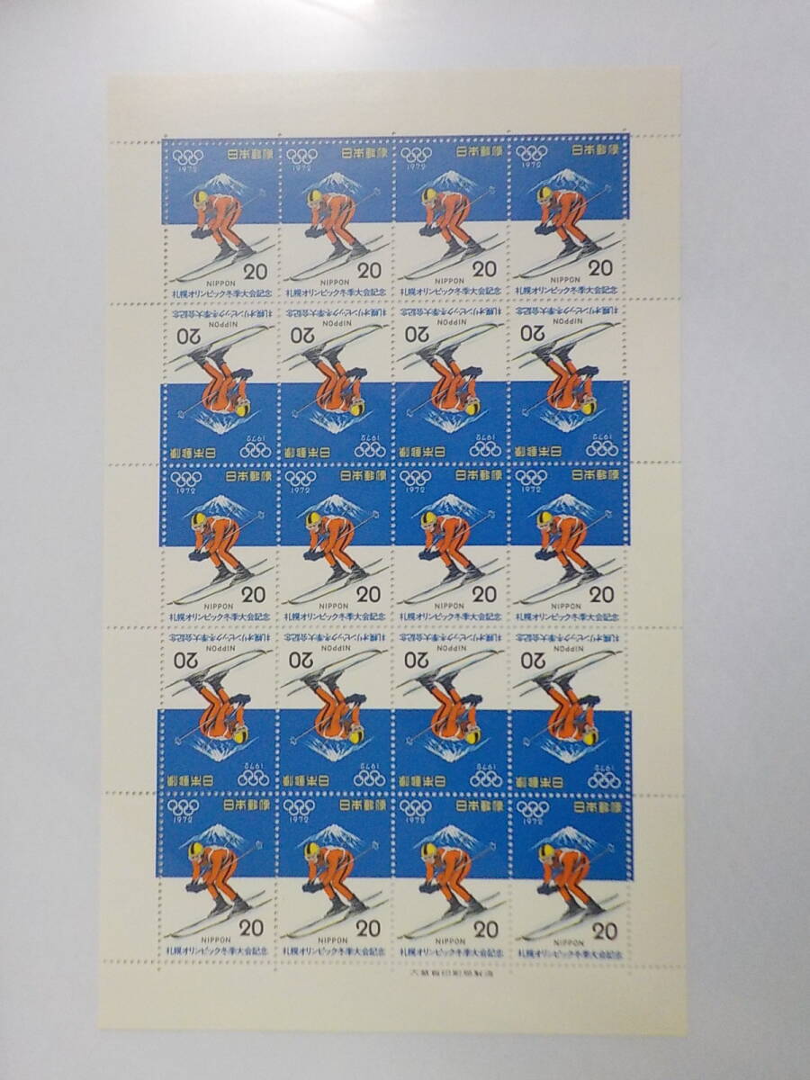 札幌オリンピック冬季大会記念 1972年 スキー滑降 / 20円切手シート 未使用
