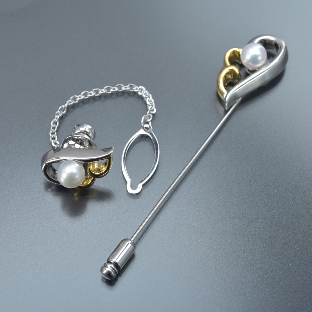 新品 田崎真珠 タイタック ブローチ セット パール6.6mm 重量5.6/6.6g