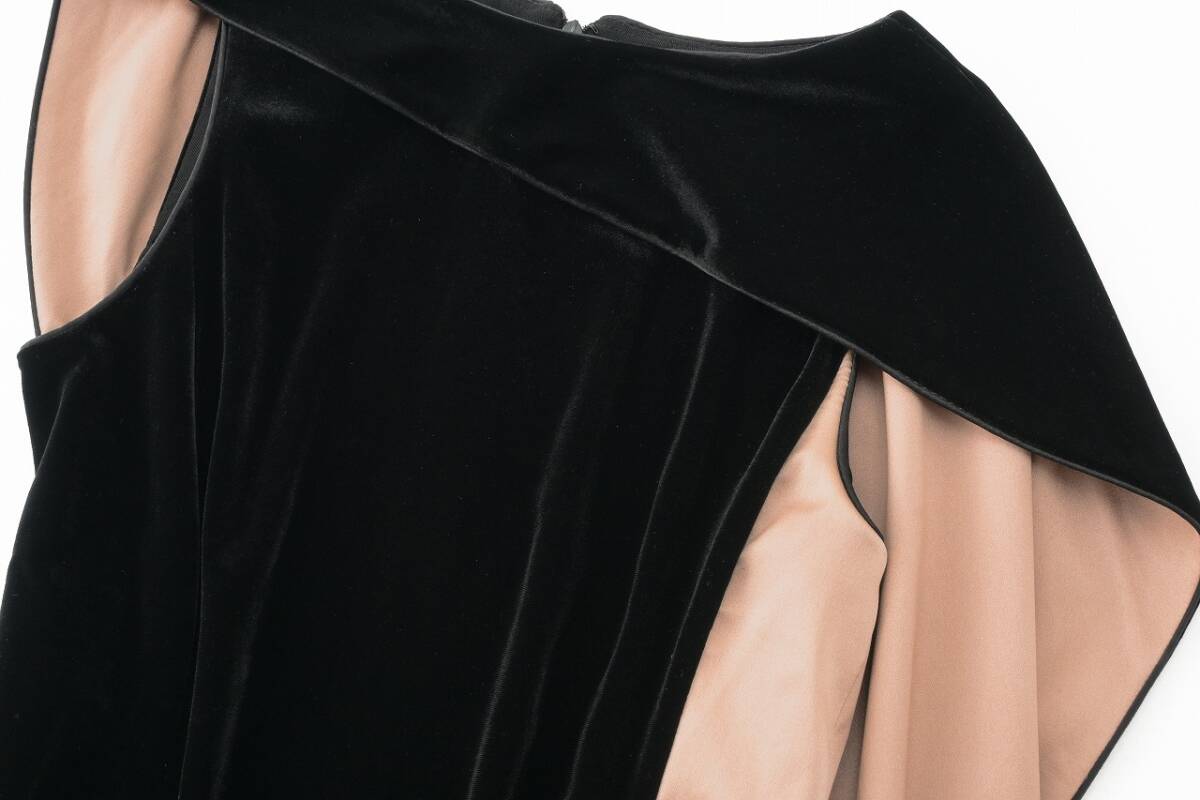 ブラックベルベットの上品な質感が魅力のワンピース。