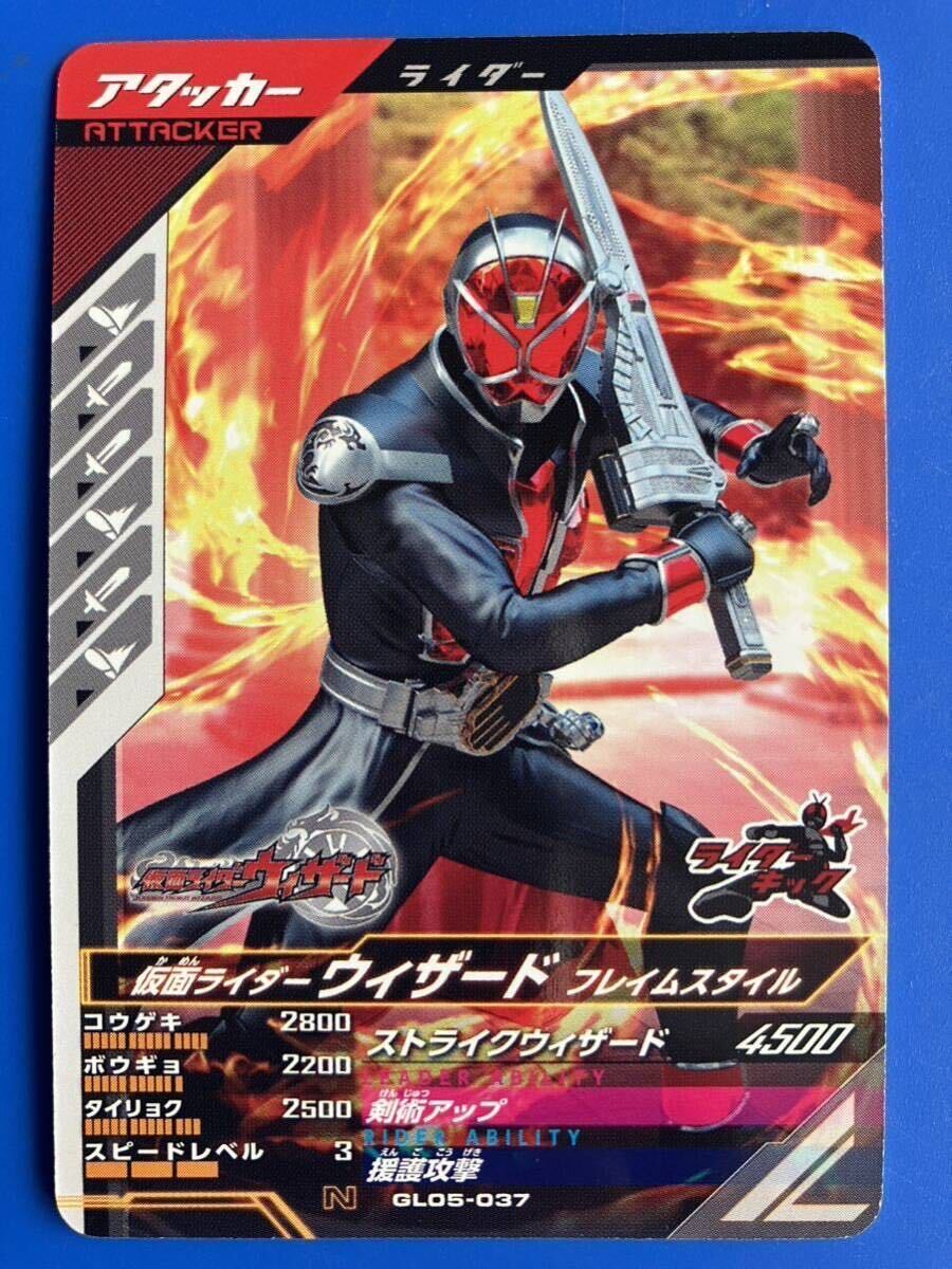 仮面ライダー、ガンバレジェンズの第GL05弾から、No.037、アタッカーカード《仮面ライダーウィザード・フレイムスタイル》の登場です。発送は、普通郵便を利用します。(特にご希望のない場合)おとりまとめも可能ですが、送料に変動する場合がございます。また、送料のご請求は、自宅での計量を基準にご請求させていただいておりますので、実際の金額と差異が出る場合もございます。予めご了承ください。他にも多数出品中です。まとめてこの機会にいかがでしょうか?ご質問お待ちしております。