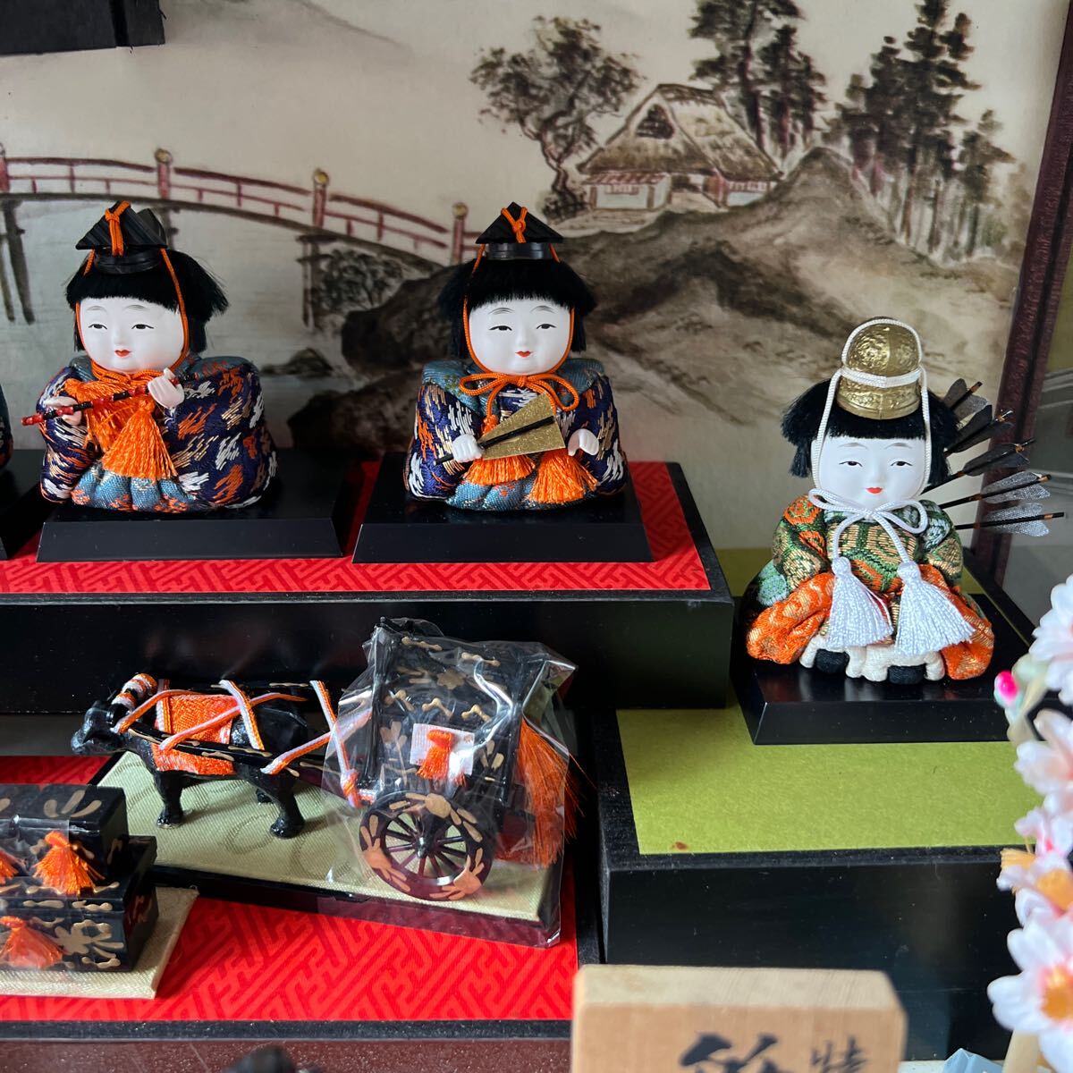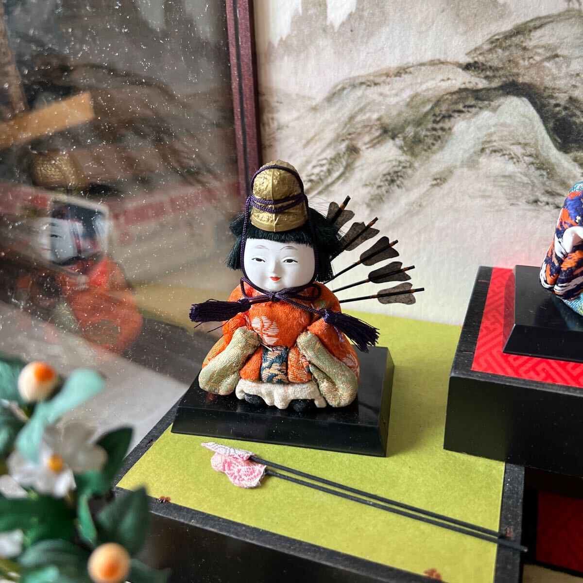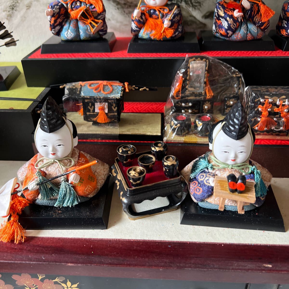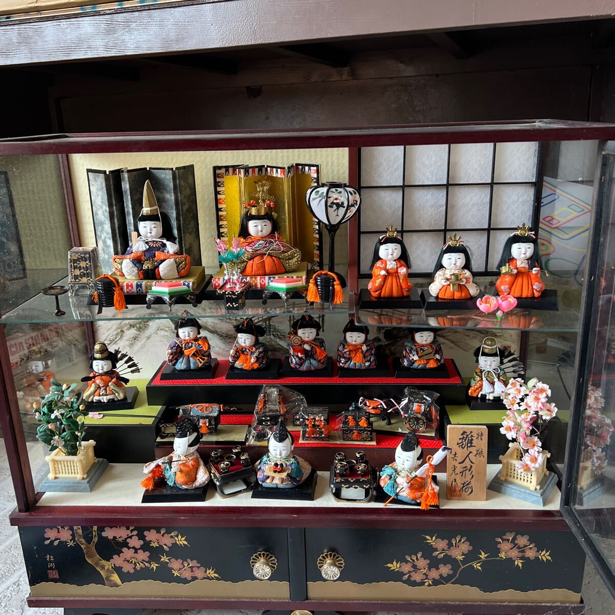 Product name: △メ右棚△ ひな人形 ガラスケース きめ込み15人揃いケース入り 昭和レトロ  アンティーク 雛人形 吉光作  お雛様 オルゴール付