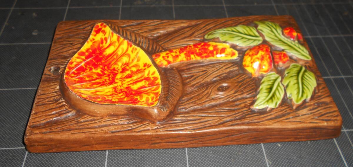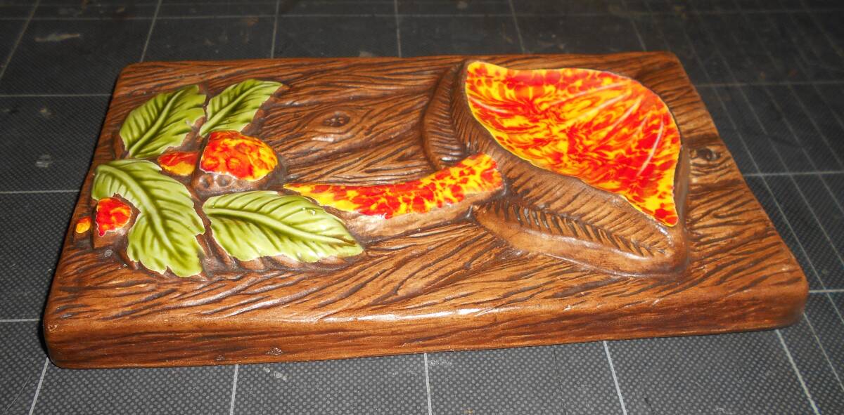 米国TREASURE CRAFT社製、ヴィンテージ壁掛けです。独特のタイダイ風の色付けが毒キノコの様で気に入ってます。状態は割れ、欠け、ヒビも無く良好です。サイズは縦20m、横12cm、厚さ2cmです。発送はレターパックプラス全国一律600円です。古いヴィンテージ品ですのでご理解のうえノークレーム、ノーリターンでお願いします。他にもキノコのヴィンテージ品を出品していますので是非ご覧になって下さい。