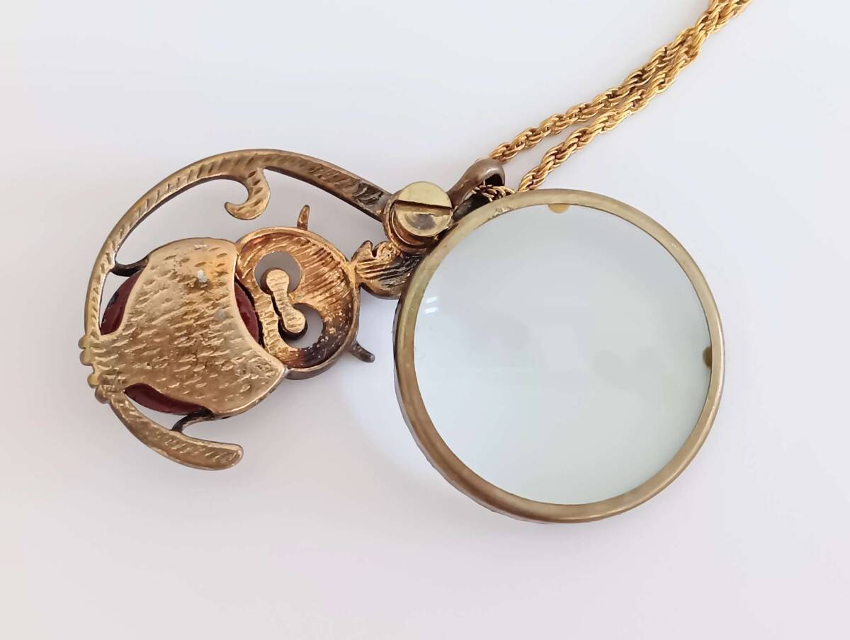 フクロウ型 ルーペペンダント ふくろう 梟 レトロ ヴィンテージ 拡大鏡 ロープチェーン ネックレス アクセサリー 箱付き