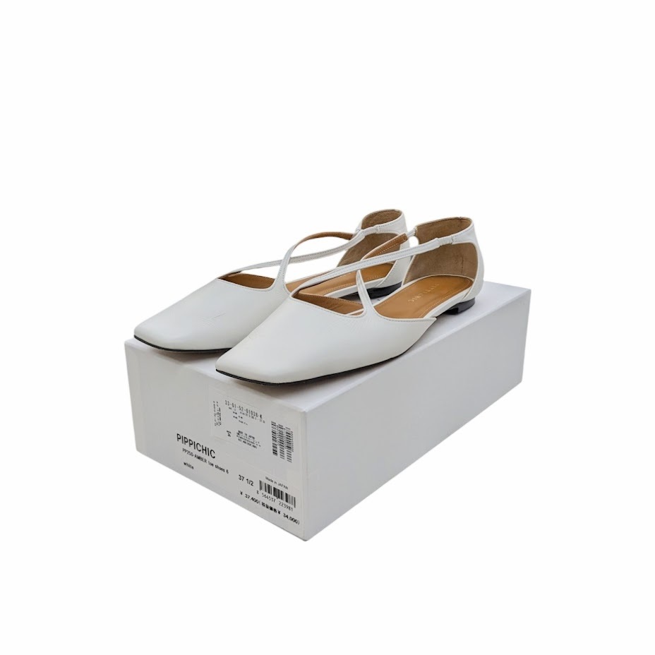 PIPPICHIC ピッピシック フラットパンプス レザー ホワイト PP25S-AMBER toe shoes 33-01-52-01038ーK 箱付き