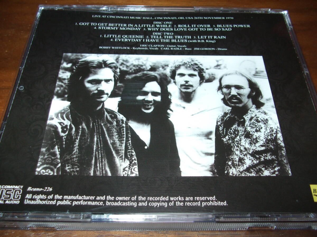 70/11/26に行われたライブを収録した作品です。クラプトン、ボビー・ウィットロック、ジム・ゴードン、カール・レイドルら実力者揃いの素晴らしい演奏を聴かせてくれます。中古盤ですが再生に支障があるような傷汚れはありません。