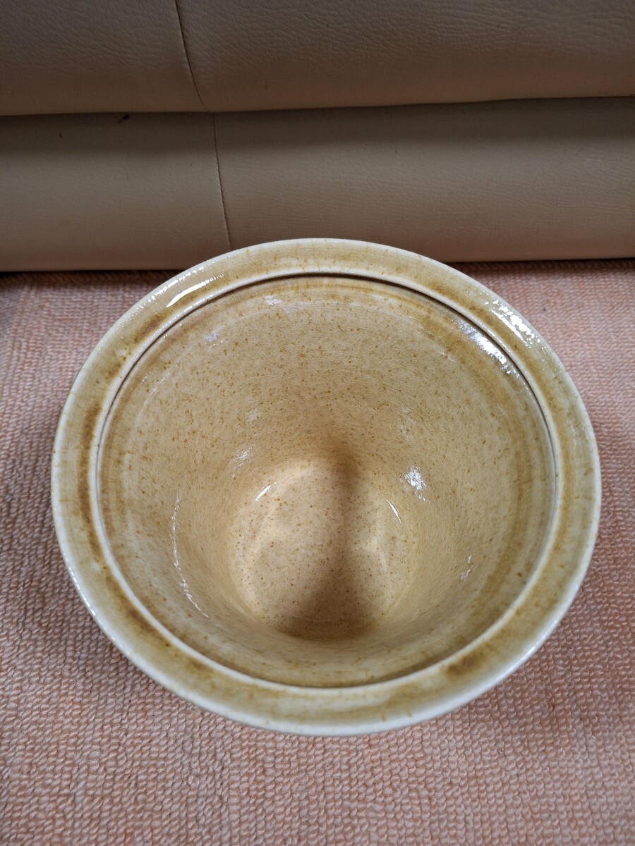 黄瀬戸、末広塗蓋水指、加藤唐三郎作です。高さ約14、5cm、口直径約19cm、共箱入りです。
