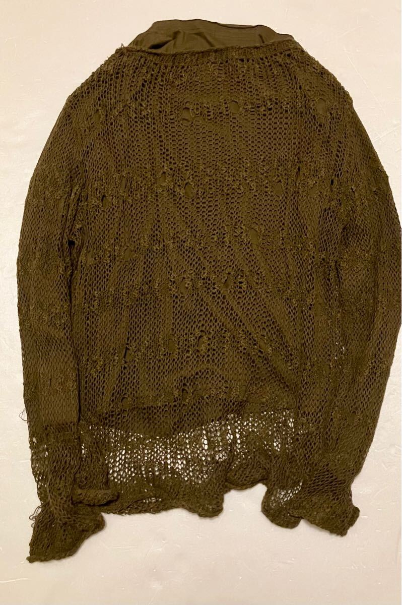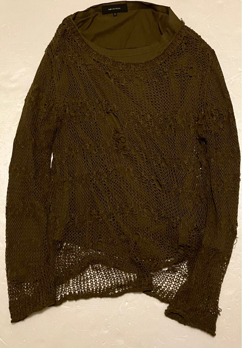 SHIPS カットソー ネットT ロンT SHIPS JET BLUE Sサイズ カーキ ダメージ加工 PUNK