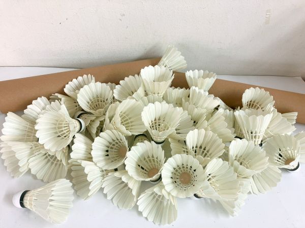 一方、競技用の試合球にはガチョウの羽根が使われます。