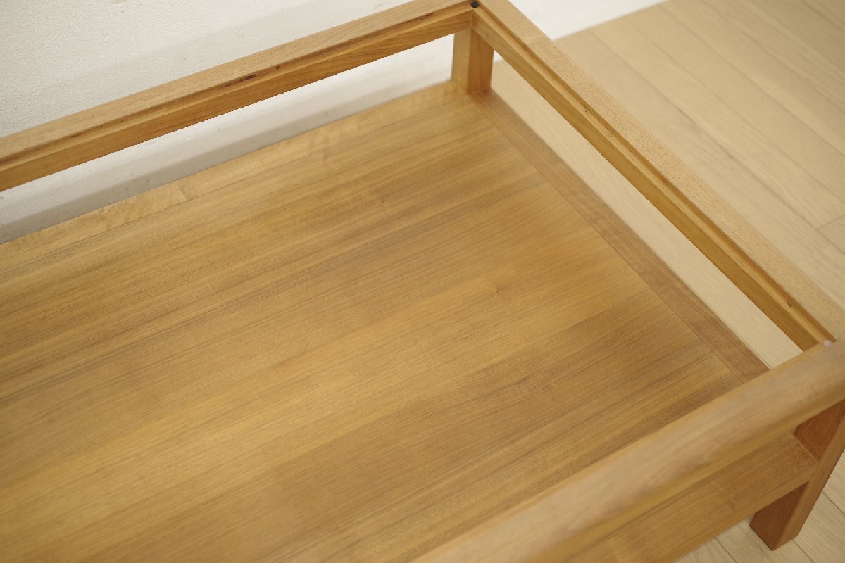 ガラス天板はスモークをかけているため下の段に置いたリモコンや、ティッシュなどの日用品が外から見えにくく生活感を減らせます。