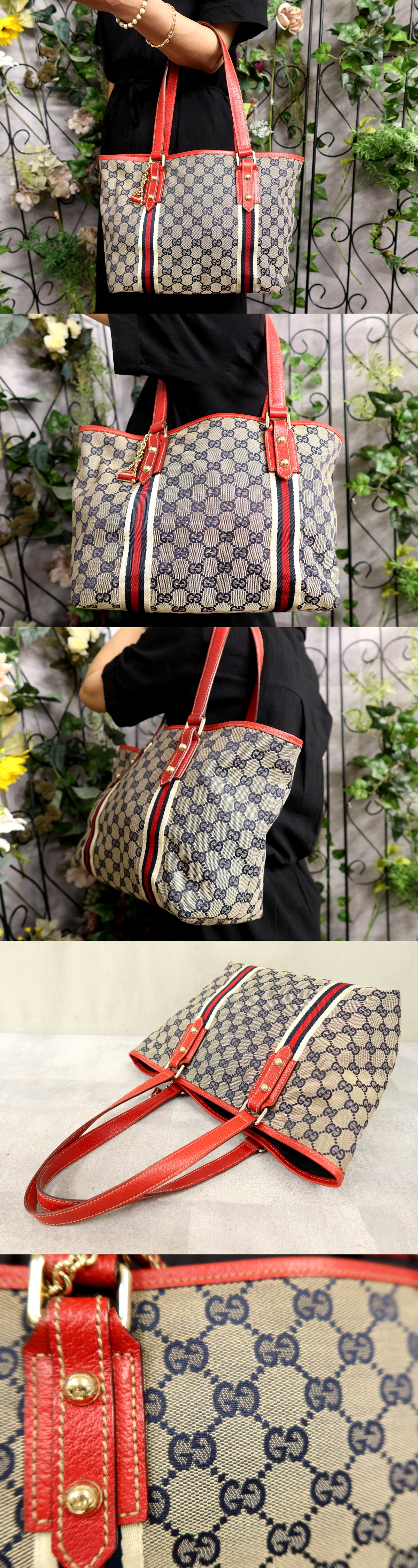 Product name: ●超美品●GUCCI グッチ●シェリー●チャーム●GGキャンバス カーフ レザー 本革●トート バッグ●ネイビー 赤 白●B5 収納 書類●Js57647